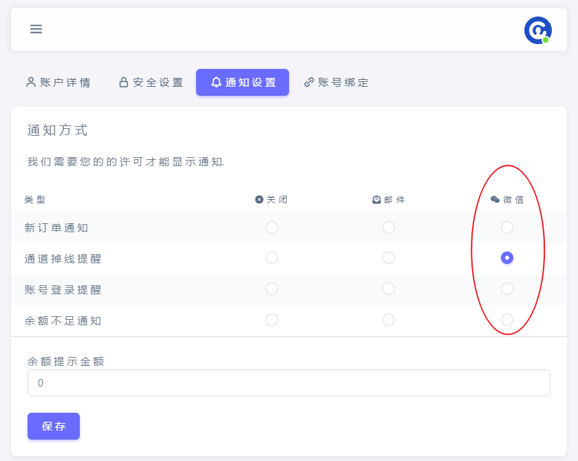 根据需求选择通知方式,例如只打开通道掉线提醒。
